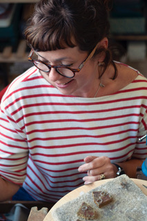 For many years Rebecca has focused on designing and making silver tableware, alongside this she has always made jewellery to commission. She has now created a range of jewellery that compliments her tableware designs. The “Cluster” range was originally working predominately in gold with precious stones but now also includes pieces in silver with organic shaped semi-precious stones. This range is all produced by manipulating small pieces of silver or gold into nuggets and then clustering them with the stones, to create softly curved sculptural pieces of jewellery.